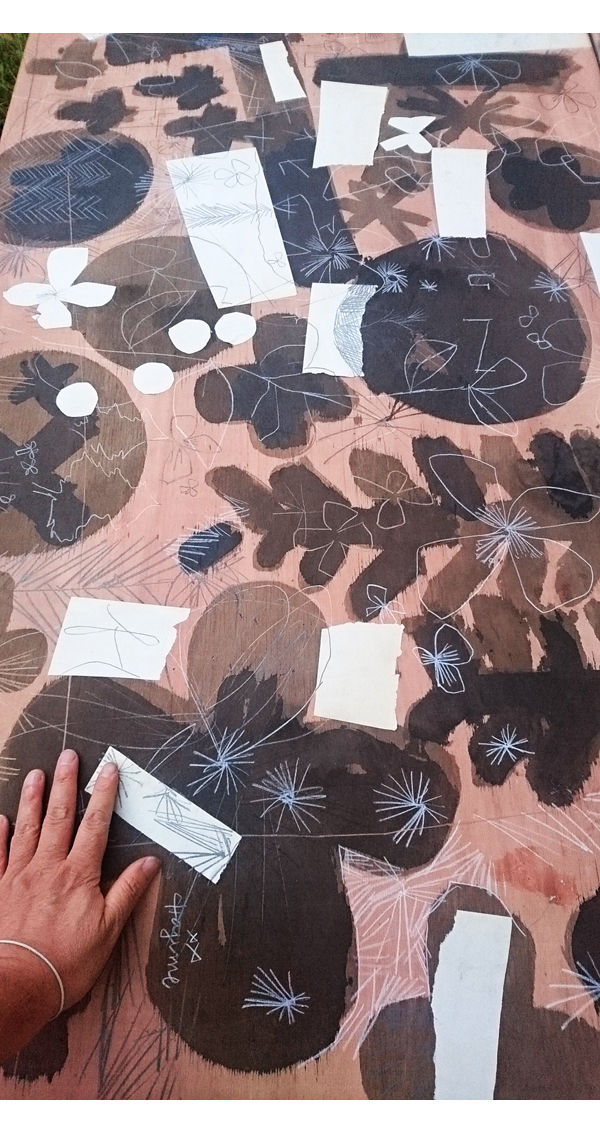 155センチの80センチ。 まだまだ加筆されて、どんどんブラウンを重ね塗り。 なのでこの色合いは、今しか見れないズ。 最後の最後に表面を丈夫にする加工をして、完成するでござる。 この秋のひそかなコーチの大実験作。 13日からの個展期間中、空カフェさんの、まん中の大テーブルの天板として、使用いただきます。 ぜひこの板の上で珈琲をススってみてくださいネ。 とにかく鉛筆の線をいっぱい入れるので、「えんぴつの天板」という名に。 絵で出来た大テーブルの天板があったらなぁぁ.. と、数年思っていて。