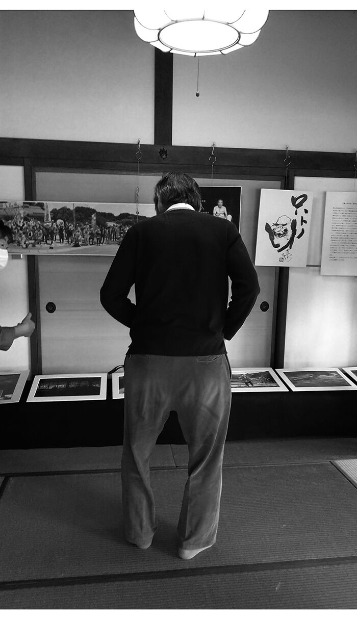 2025年10月19日 中村邦夫さんの写真 仕事を抜け、三春での中村邦夫さんの写真展を味わいに。中村さんの力が隅々までみなぎってるはずなのに、被写体の橋本広司さんの愛しい存在しか感じさせない、素晴らしい写真ばかり。きっと、どこまでも深く、被写体の相手に惚れ切るのでありましょう。行って良かった。で、勝手にごめんなさい。帰り際、在廊されていた中村さんご本人の後ろ姿を激撮(上)。んんん哀愁たっぷりなんだけど、、撮った自分の作為が見え見えだなこれ、、下は、中村さんがとらえた、広司さん。広司さんにとって、どんな時間か。さぁて今週も、さらなる闘い。難しい絵のお題が山積みであるが、そこは作為的にならんよーにだな。どちらさまも、火の用心。おやすみなさい。 タグ :#中村邦夫#三春#橋本広司