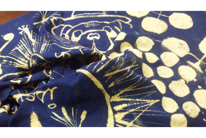 さて、先日ブログに書きました、手書きの原画ストールの件、思わぬたくさんの反響というか、お問い合せをいただいてしまいました。 ありがとうございます。 先日コサえたものは、すでに人手に渡ってしまい、現在、手元にはストックはありません。 ゴメンナサイ! 仕事の合間、時間の余裕がある時に、家人の協力のもと製作するのですが、1点ずつ描いては色止め等の工程がかかるため、次はいつのことやら、解りません。 が、またチャンスがあればお知らせしたいと思います。 いただいたご連絡多数のため、この場を借りてお返事とさせていただきますことを、どうかお許しくださいね。