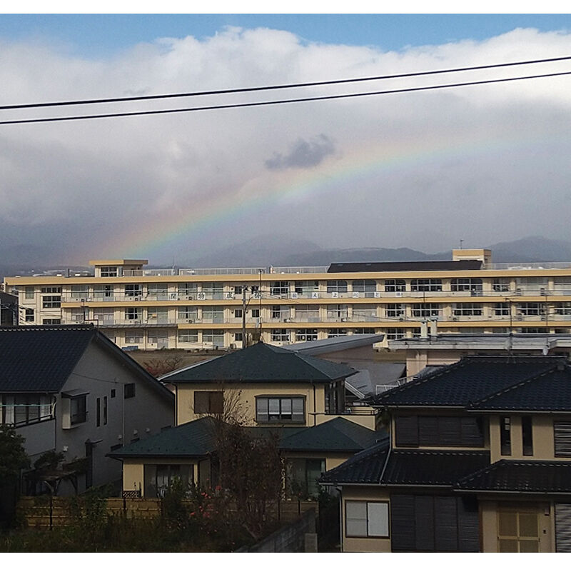事務所の裏の開成小学校から、虹が生えておりますた。