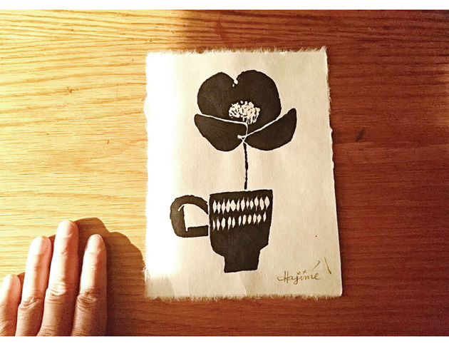 写真の小さいお花の絵は、4年前、空カフェさんで行った「お花の図、ちまちま展。」で、カウンターに並べた物体でございます。ポイントは、手のひらに乗る、このサイズ感でございます。